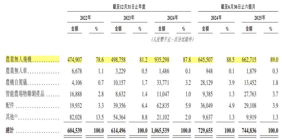 但反映在财报中,目前,新业务还未能挑起大梁。2025H1,农业无人机依然是极飞科技的营收支柱,占总营收比重提升至89%。