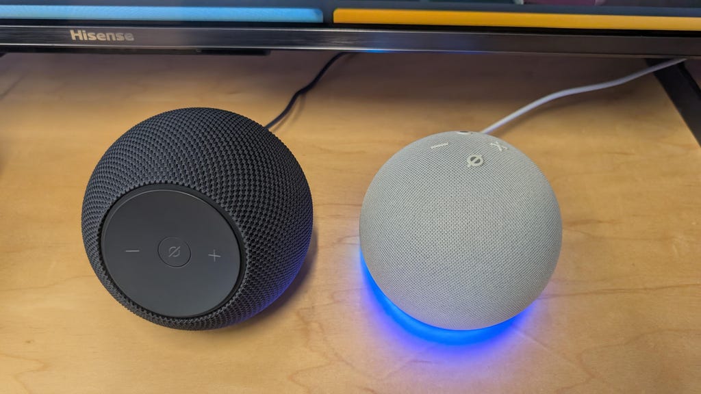 与最近几款Echo音箱一样,我发现这两款产品的麦克风都非常灵敏。即使音乐音量全开,我在房间的另一边轻声说“Alexa”,它也能准确识别。只有当我小声到几乎听不见时,它才无法识别。