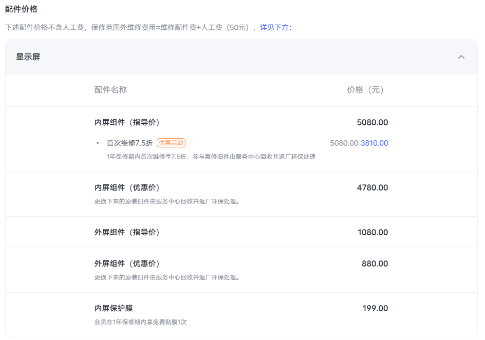 OPPO官方曾披露,Find N系列铰链成本约800元,占整机售价的10.6%,而维修时的人工与技术成本更使终端费用翻倍。更令人无奈的是,主流厂商均将折叠屏排除在常规保修外,用户需额外支付1500-2500元购买“意外保障服务”,否则易被判定“人为损坏”。