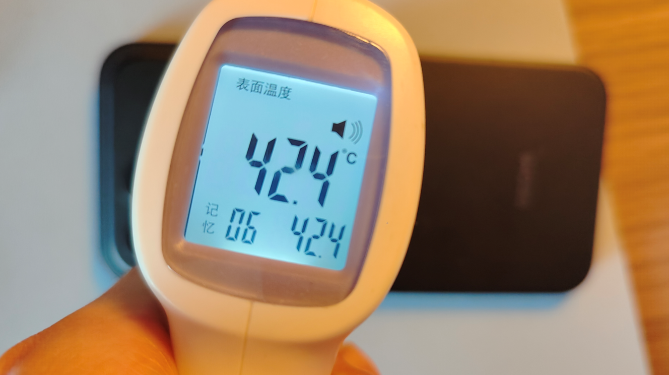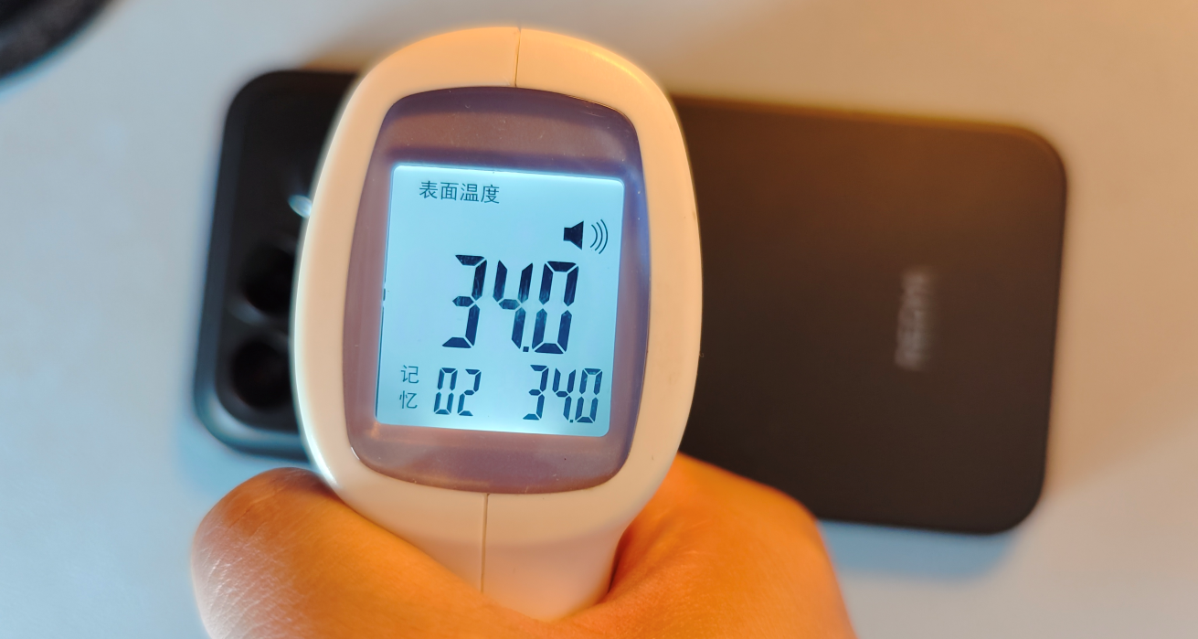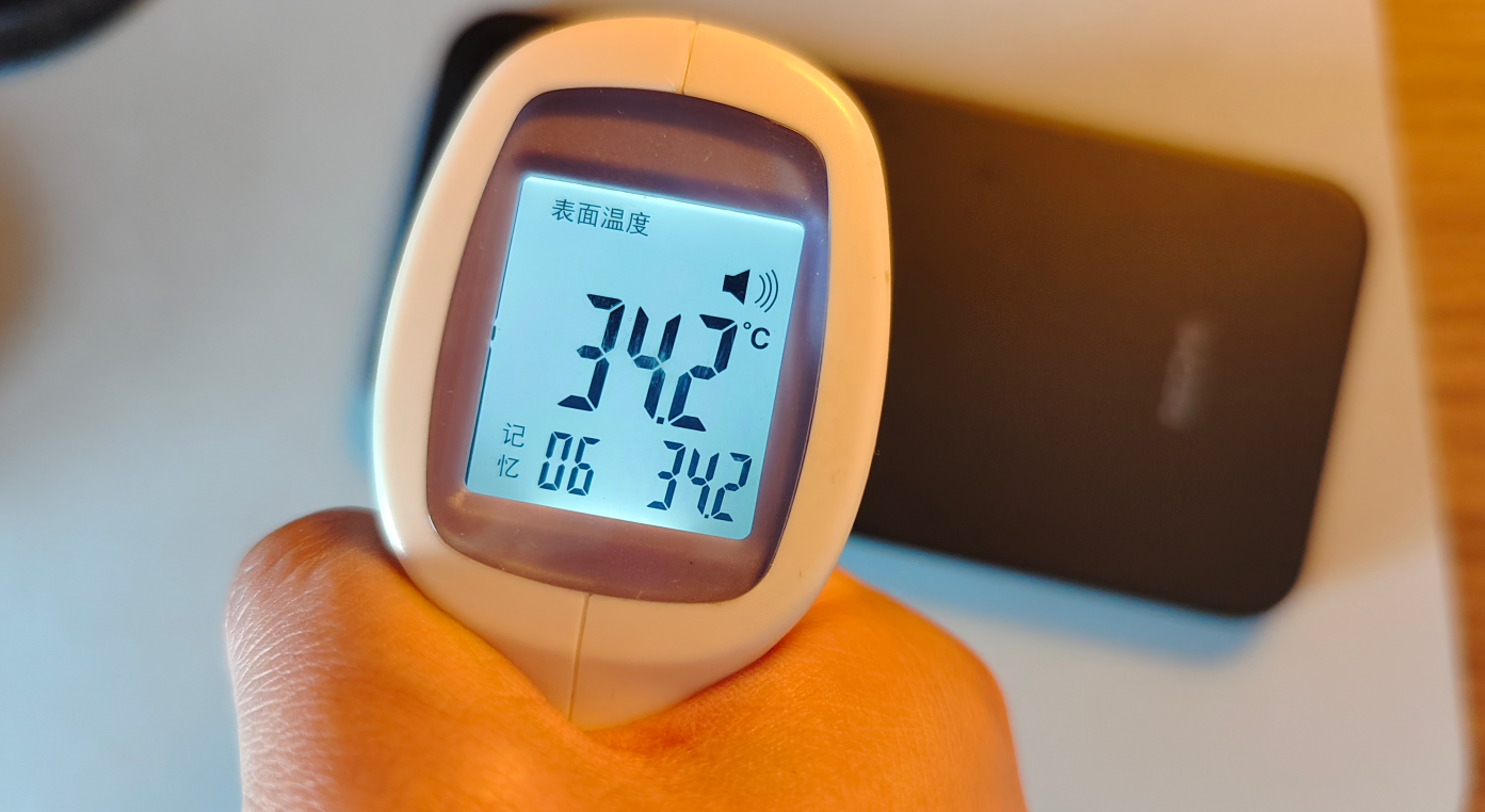 游戏运行的平均功耗为 3.7W 左右,同样也不算高,游戏运行时机身温度最高为 34.0℃左右,能感觉到机身有热量,但不明显。