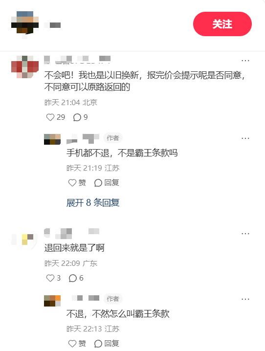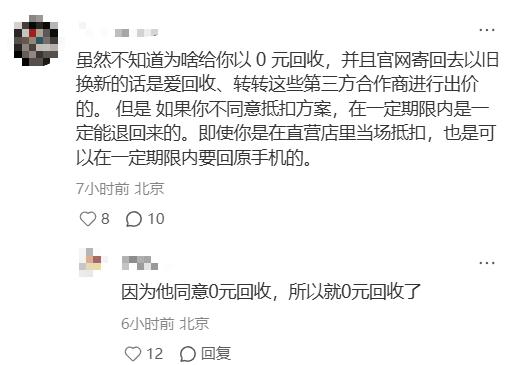 对此,评论区有人表示,“如不同意抵扣方案,在一定期限内是能退回的。即使是在直营店里当场抵扣,也可以在一定期限内要回原手机。”