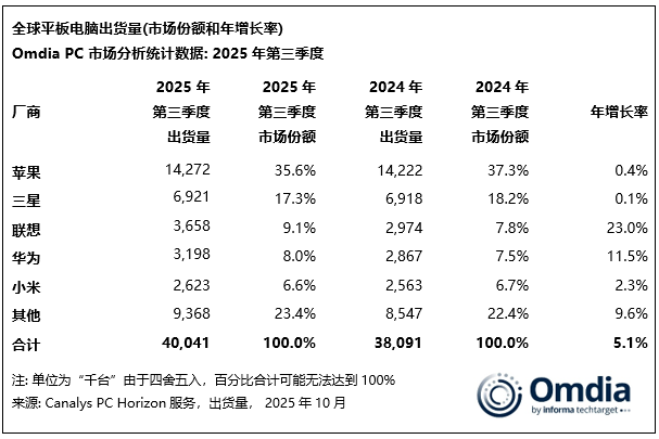 3.2025年第三季度全球平板电脑出货量同比增长5%