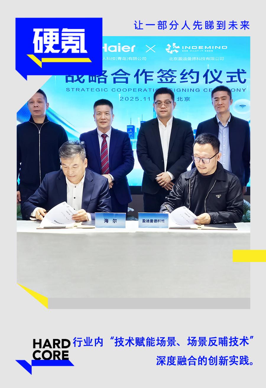 2025年11月19日,海尔机器人与北京盈迪曼德科技有限公司(以下简称INDEMIND)在北京正式签署战略合作协议,共同推动具身机器人在家庭场景的落地与应用。海尔智家机器人产业总经理丁来国、INDEMIND创始人于飞及双方核心成员共同出席了签约仪式。