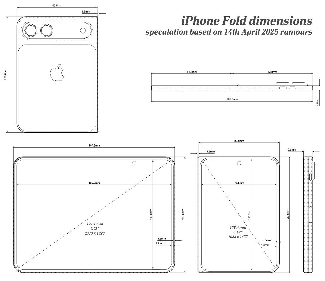 有一种说法:iPhone Fold 类似两台 iPhone Air 拼接