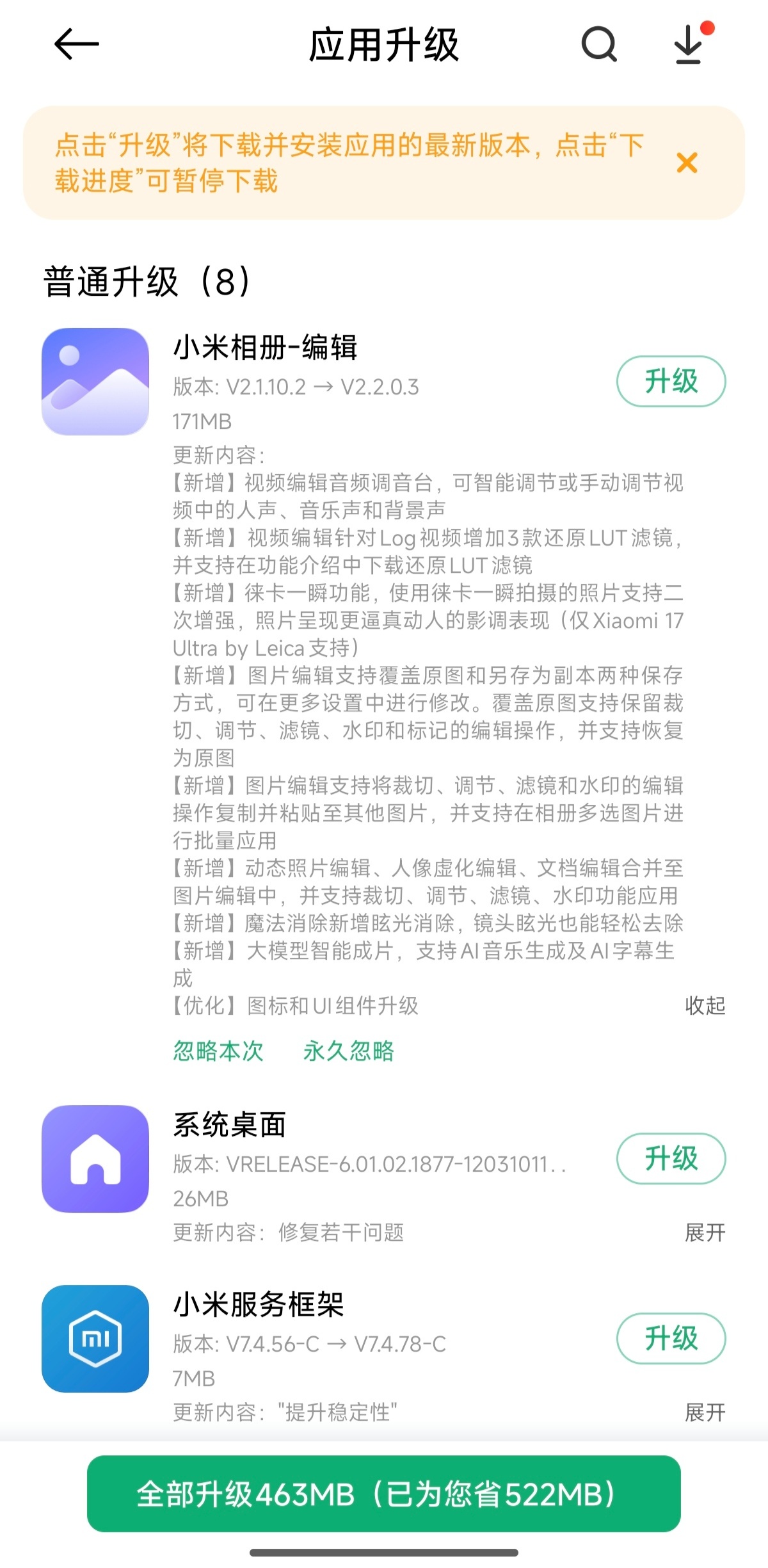 另外,小米 17 Ultra 系列手机的相机编辑能力也迎来升级,更新内容如下: