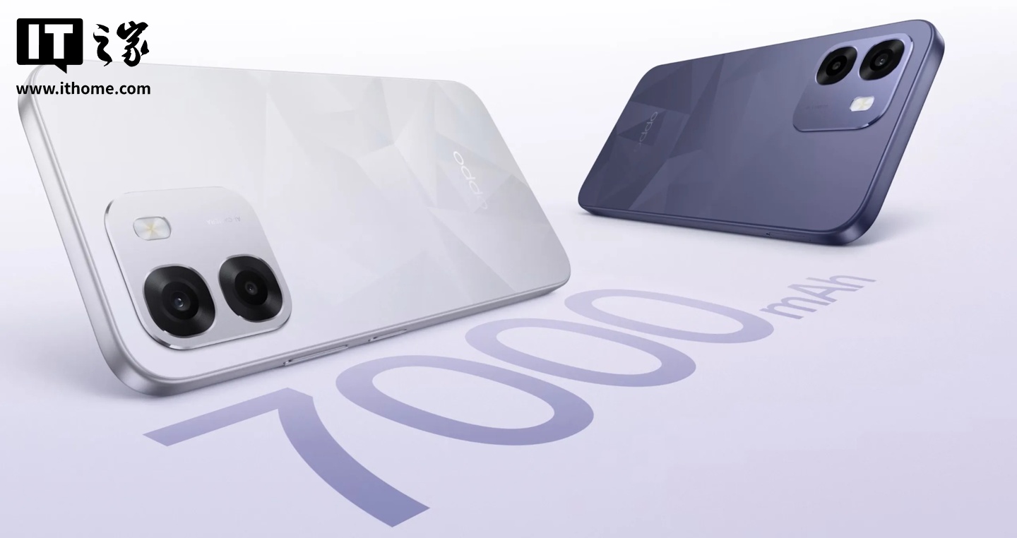 参数方面,这款手机搭载高通骁龙 685 芯片,支持 4G 网络,重量 215 克,厚约 8.61mm,配备 7000mAh 电池,支持 45W SUPERVOOC 有线闪充,符合 IP69 防尘防水标准,拥有 VC 液冷散热系统,配备 8GB 内存、128GB UFS 2.2 存储空间,提供 Crystal White(IT之家注:水晶白)和 Crystal Violet(水晶紫)配色。