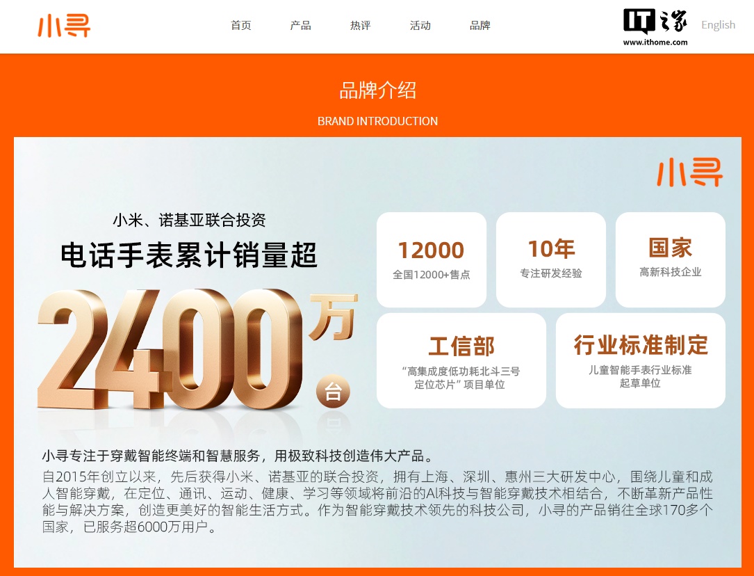 IT之家查询小寻官网获悉,该品牌创立于 2015 年,先后获小米、诺基亚的联合投资,拥有上海、深圳、惠州三大研发中心,其产品销往全球 170 多个国家,已服务超 6000 万用户,已推出的产品包括: