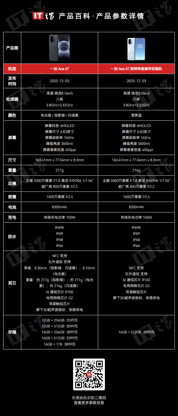 IT之家 12 月 29 日消息,一加 Ace 6T 原神神里绫华定制机(16GB+512GB 规格)已于 12 月 22 日 10:00 开售,首销价 3699 元,赠定制手提箱礼盒。京东显示,该机将在今日 10:00 再次开售。
