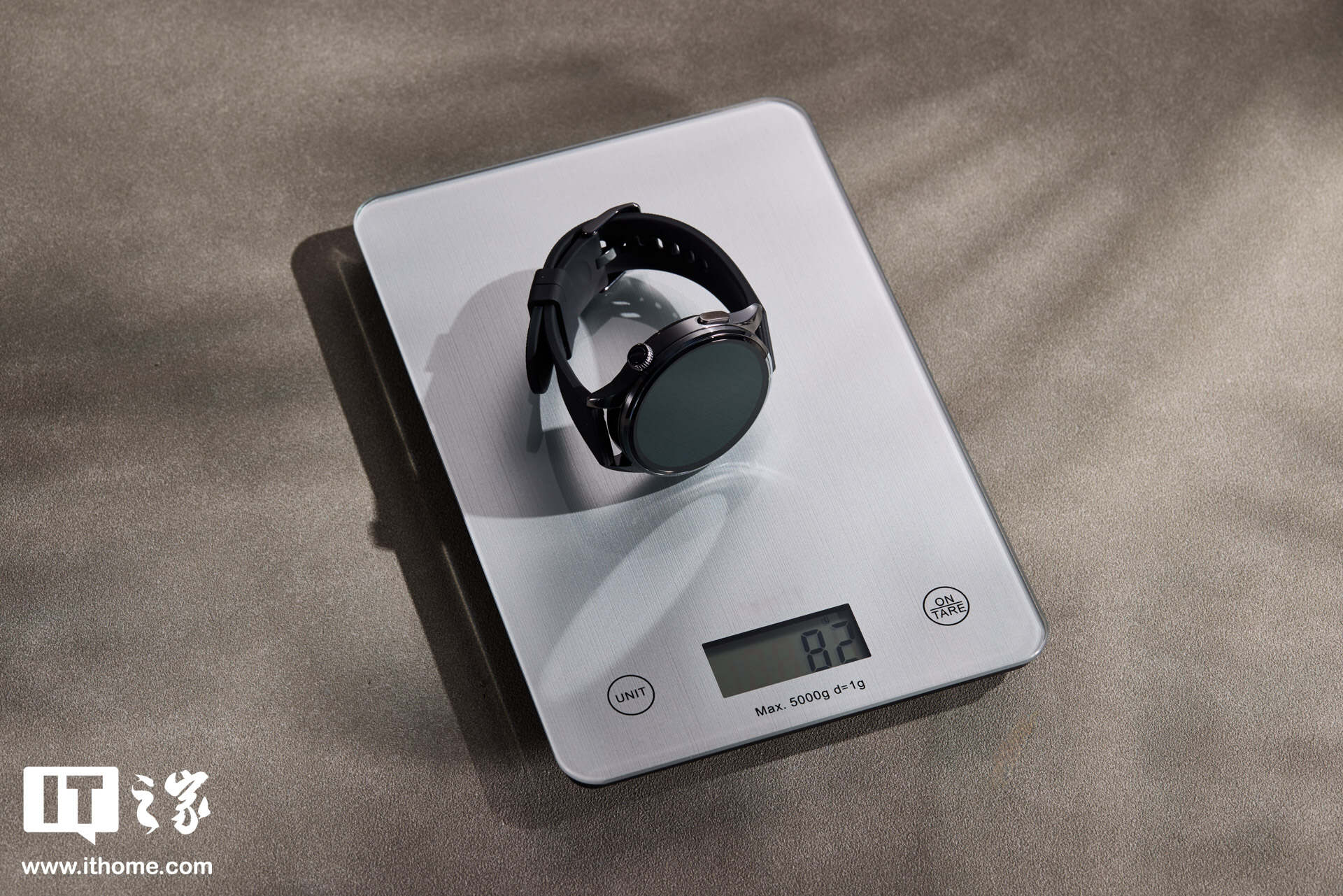 IT之家实测加上氟橡胶表带后,总重来到了 82g 左右。这一重量虽然谈不上轻薄,但也还在可接受的范围内,并未重得离谱。由于机身厚度达到了 12.3mm,日常佩戴时手腕上确实会有明显的存在感。经过几天的磨合,晚上戴着睡觉,倒也完全习惯了它的存在。