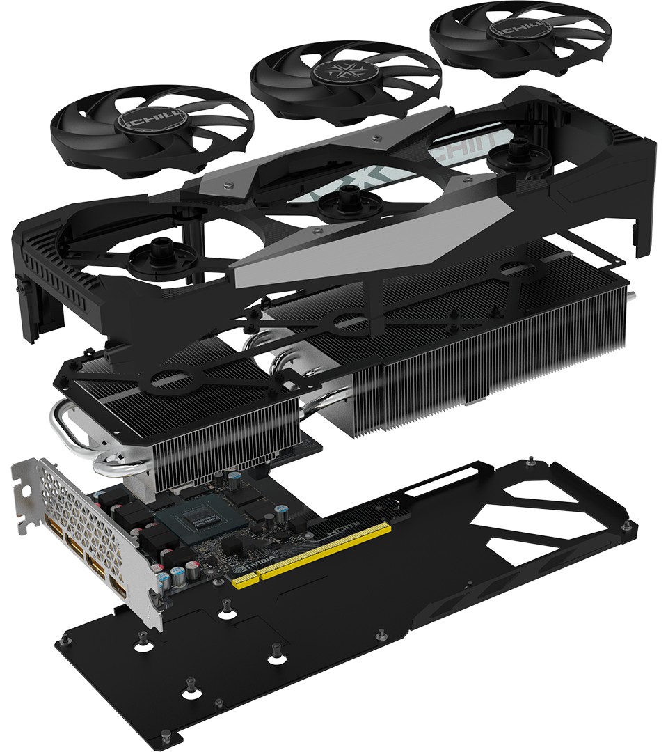 回到这张显卡上,映众在 RTX 5060 Ti 16GB 超级冰龙上采用了源于上代冰龙显卡并得到升级优化的外观模具,三维 310×116×61 (mm),配备三颗 88mm 轴流风扇和四热管铜底散热模组,加速频率可达 2662MHz (+90MHz)。