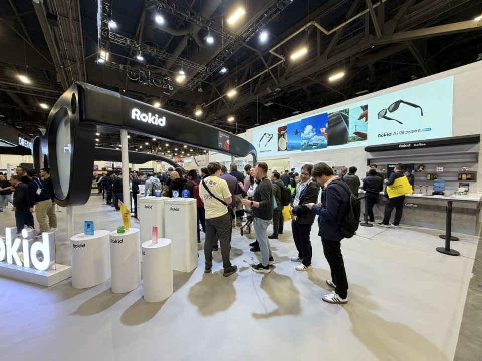 不得不提的,依然是前文已经涉及到的中国 AI 眼镜品牌乐奇 Rokid 的展台。这家的展台经常排起长龙、人气火爆,主要有三方面原因,其一是展台特别装置的「巨型眼镜」,现在效果来看,颇为吸睛,包括前期的宣传预热;其二是眼镜品类展台的试戴体验,对应到单人本身就比较耗费时间,而这又进一步拉长了人群的排队规模;其三是 Meta 眼镜供货紧张的局面,客观上让乐奇等更多 AI 眼镜品牌可以有「外溢」的受众群体。