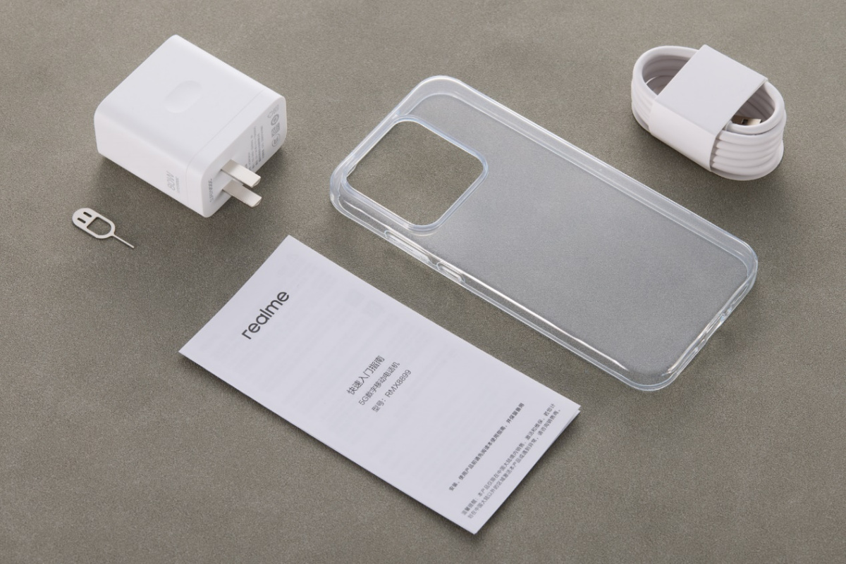 配件方面,包装内附有 1 个透明清水软壳,1 个白色 80W 闪充 USB-A 口适配器 ,1 根白色 A to C 数据线、1 个笑脸卡针以及 1 本快速入门指南。