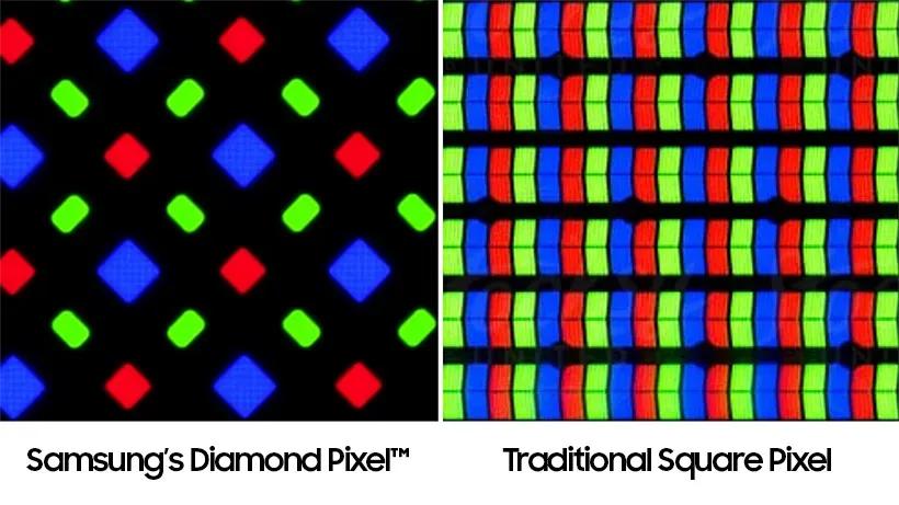 另外,三星有一个独门秘技:OLED “钻石排列” (钻排)。