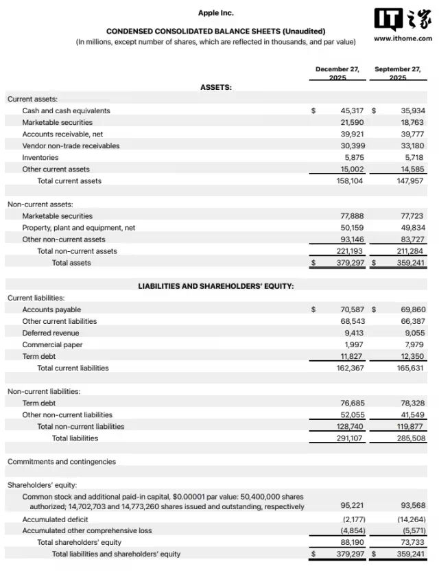 苹果今日(1 月 30 日)公布了截至 2025 年 12 月 27 日的 2026 财年第一财季财务业绩。