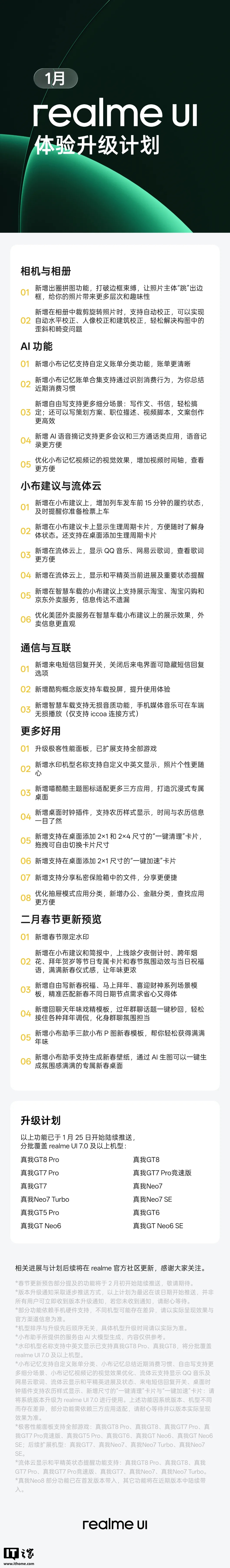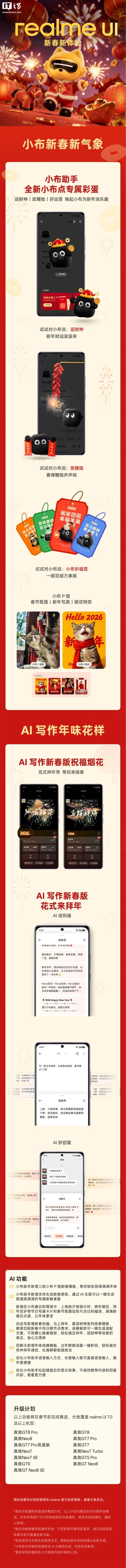 IT之家注意到,在今年 1 月的 realmeUI 一月体验升级计划中,真我手机官方便预告了二月春节更新内容: