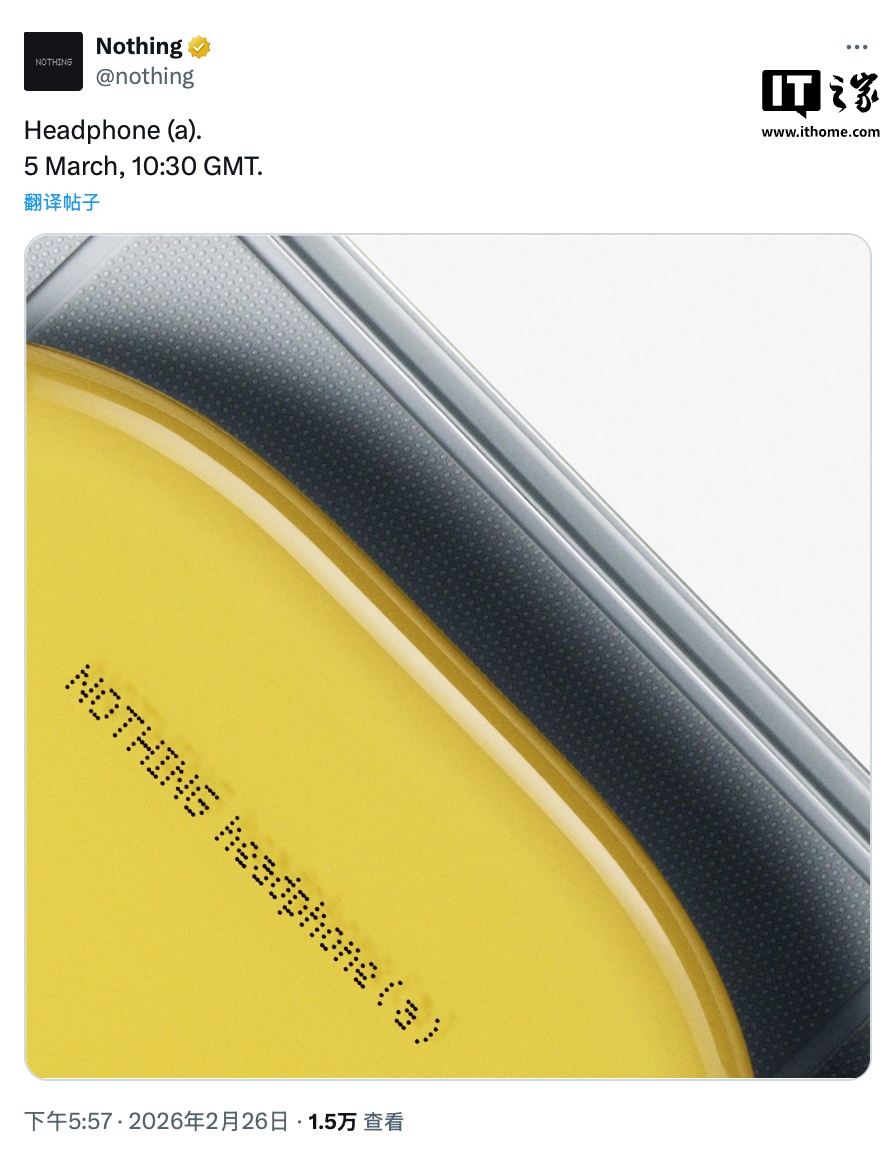 IT之家 2 月 26 日消息,Nothing 现已官宣旗下 Nothing Headphone (a) 头戴式耳机将于 3 月 5 日伴随 Nothing Phone(4a)/Pro 系列手机一同登场。