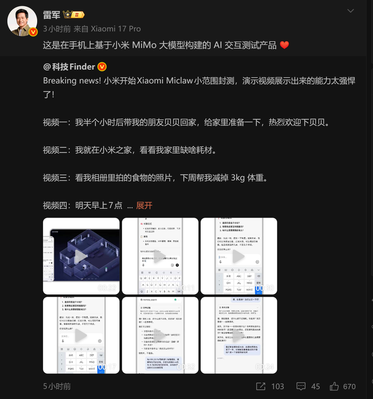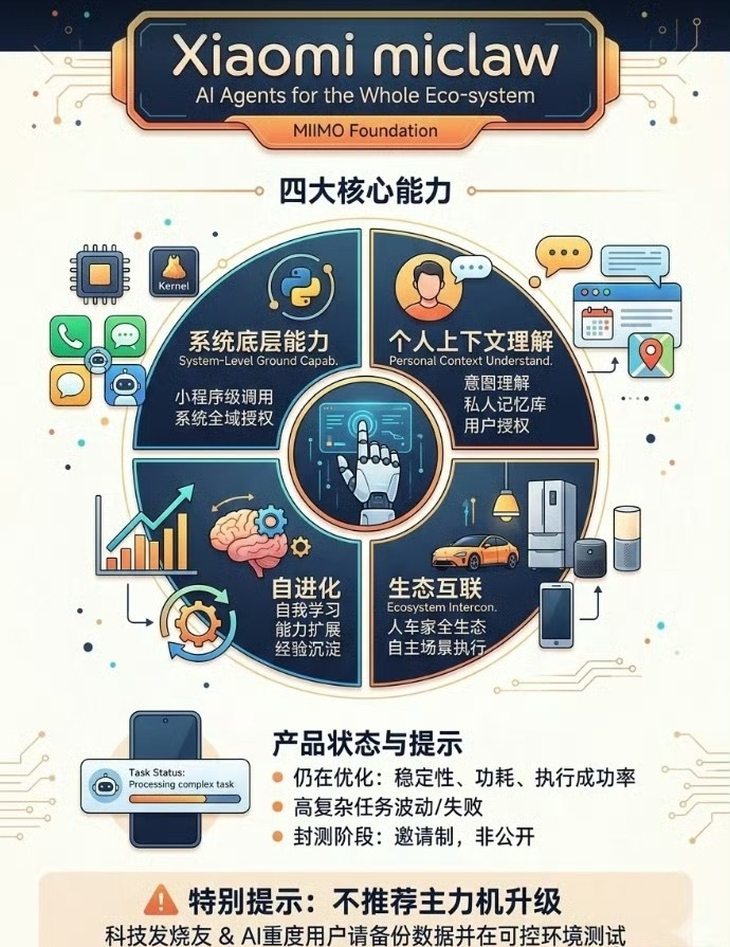 小米又搞大动作!国内首个手机端类OpenClaw(昵称“龙虾”)Agent应用——Xiaomi miclaw正式发布,直接打破手机AI“只会聊天不会干活”的魔咒。