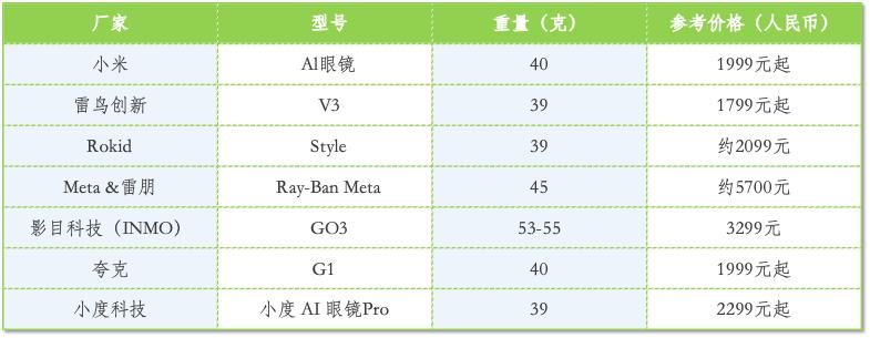 手机行业作为智能终端的传统霸主,也没有错过AI眼镜这个潜在的“下一代产品”。小米、OPPO等主流手机厂商纷纷布局,将AI眼镜视为延伸自身生态、抢占未来入口的重要布局。小米2025年首发的AI眼镜搭载1200万像素摄像头和小米澎湃OS系统,可实现第一人称视角的视频通话、直播;搭载超级小爱,支持智能问答、10种语言翻译、会议纪要、控制手机及智能家居、眼镜扫码支付等功能。