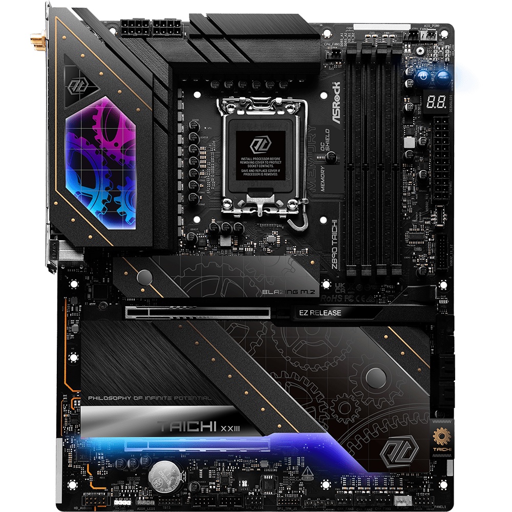 今日在中国台湾地区举行的英特尔新一代酷睿 Ultra 处理器发布暨最新 AI PC 体验会上,华擎带来了 Z890 Taichi 的十周年纪念版。