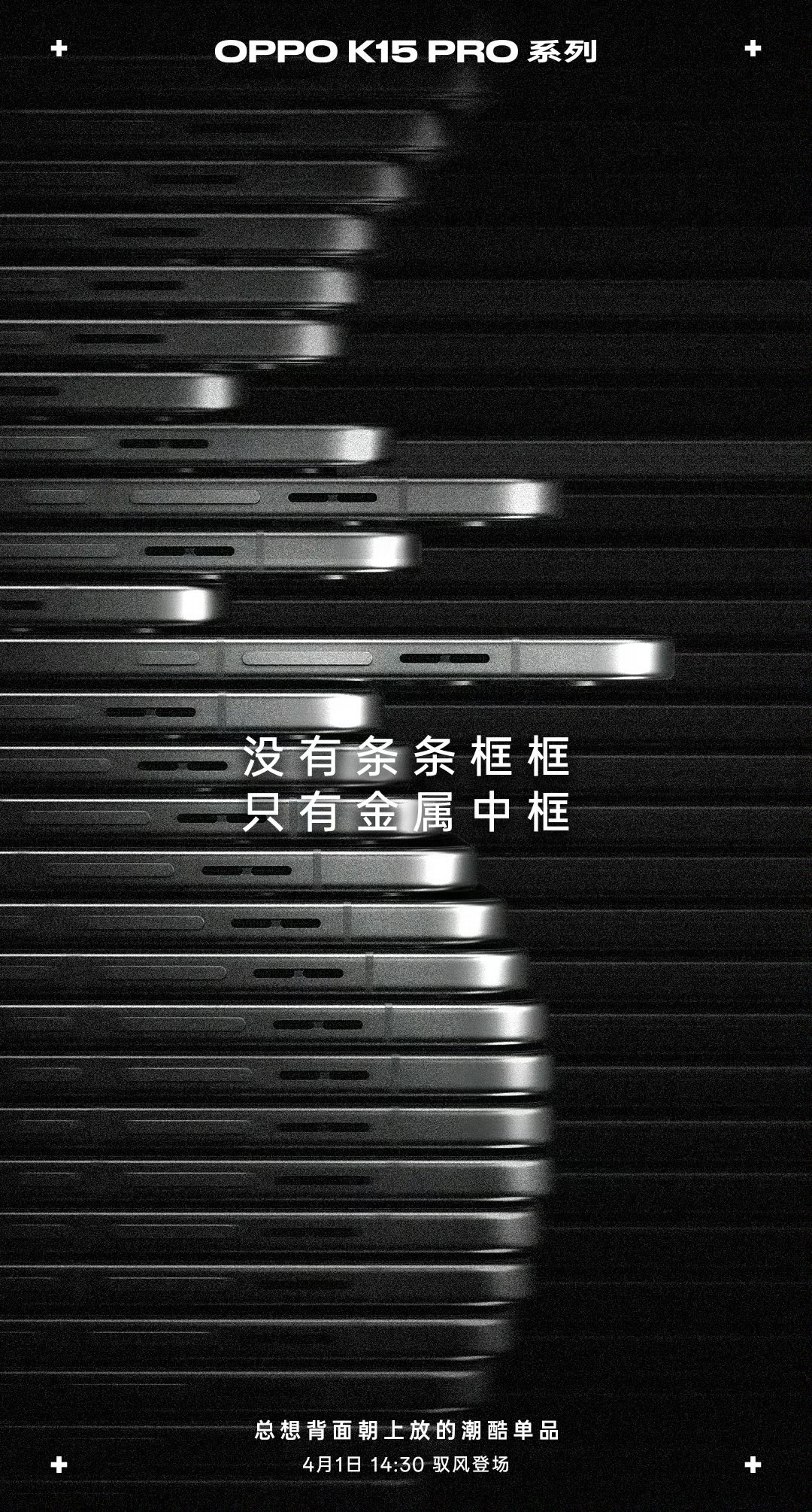IT之家 3 月 26 日消息,OPPO K15 Pro 系列手机将于 4 月 1 日 14:30 发布,最新预热显示,这款新机采用岚影呼吸灯搭配金属中框,号称“总想背面朝上放的潮酷单品”。