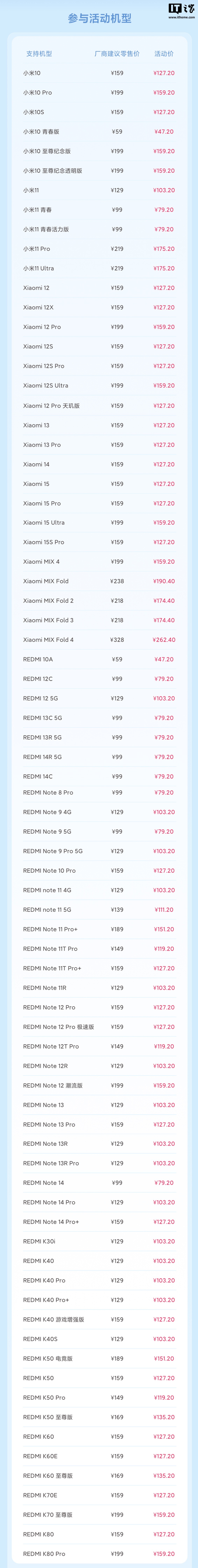 REDMI K80:活动价 127.20 元