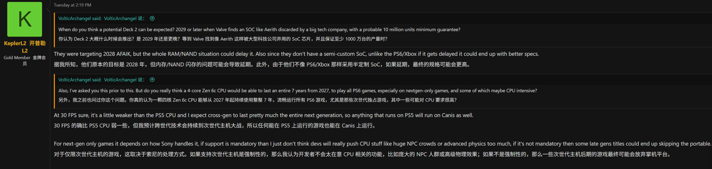 不过 KeplerL2 表示,目前的 DRAM / NAND 短缺潮可能会导致延期。同时由于这台掌机并没有像 PS6/Xbox 那样采用半定制 SoC,如果延期最终规格可能会更高,因此对消费者来说未尝是坏事。
