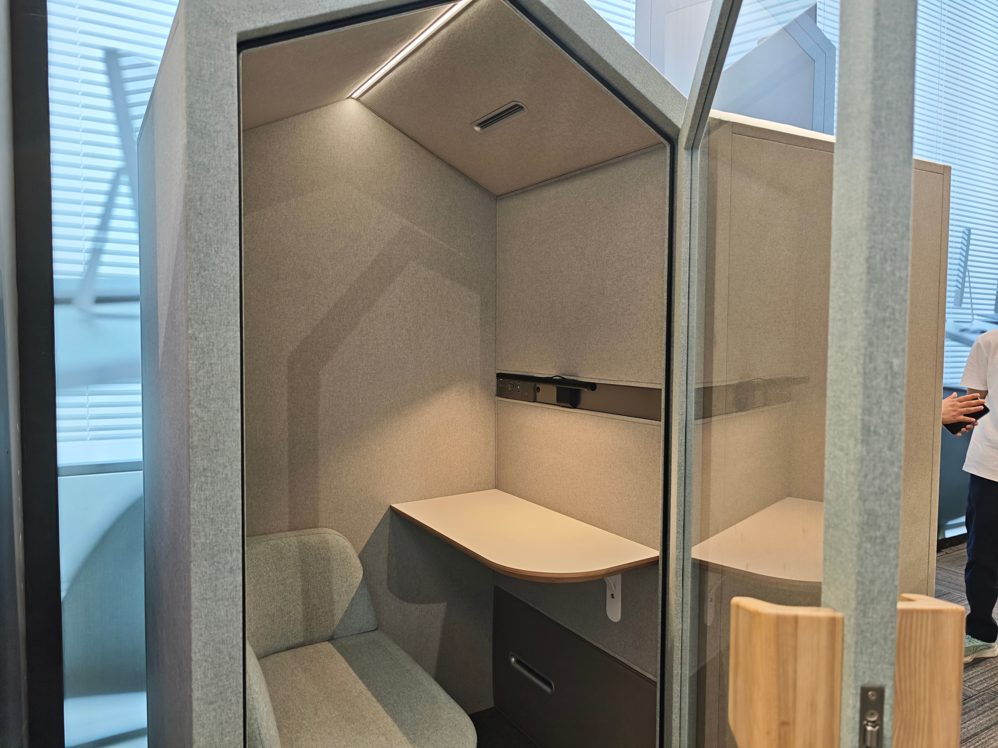 我还记得首次见到这玩意时是在广州的白云机场候机厅,然后在杭州的阿里总部、北京的字节总部等地方也都看到了类似的空间,转眼间它已变得颇为普及。过去几年,静音舱(或称隔音舱、静音工作站)更多是以“公用电话亭”的形态出现在机场候机楼、大型展会媒体中心或是采用开放式设计的互联网大厂办公区内。