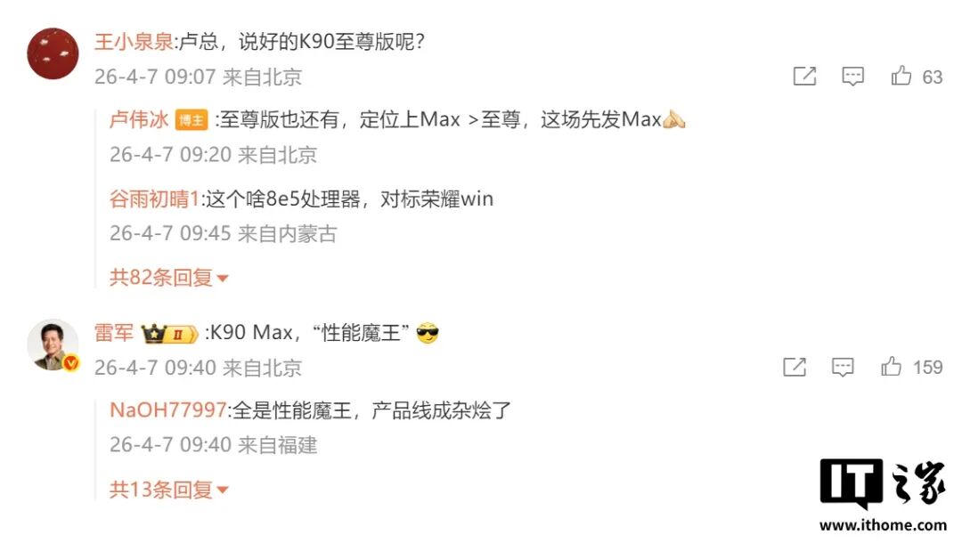 关于 K90 Max 的具体发布时间,官方并未公布,不过诸多网友猜测或许是 4 月 21 日。