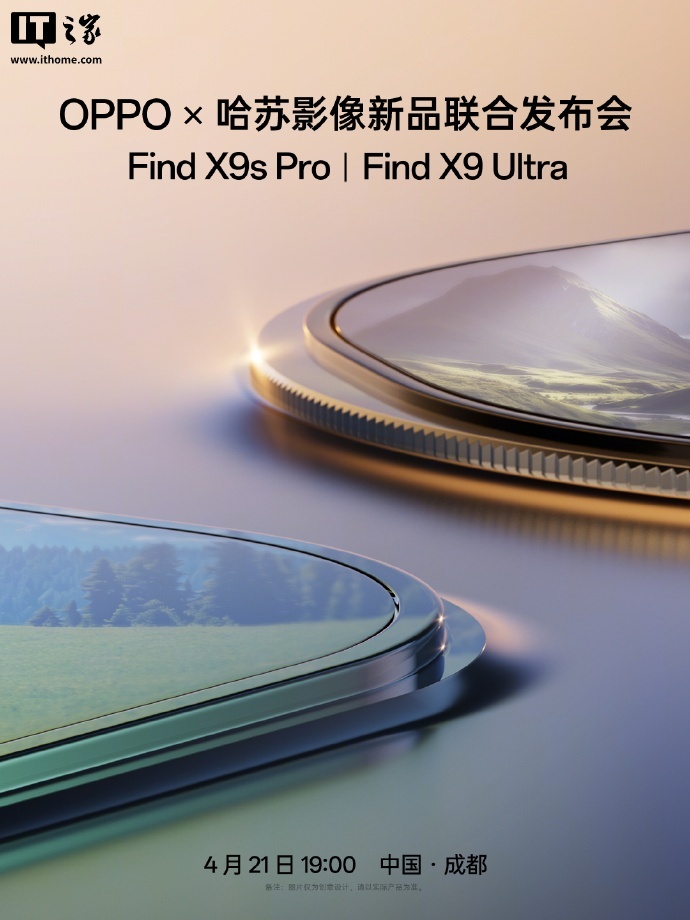 IT之家 4 月 10 日消息,OPPO × 哈苏影像新品联合发布会将于 4 月 21 日晚 19:00 在成都举办,届时将带来 Find X9s Pro 和 Find X9 Ultra 两款旗舰新机。