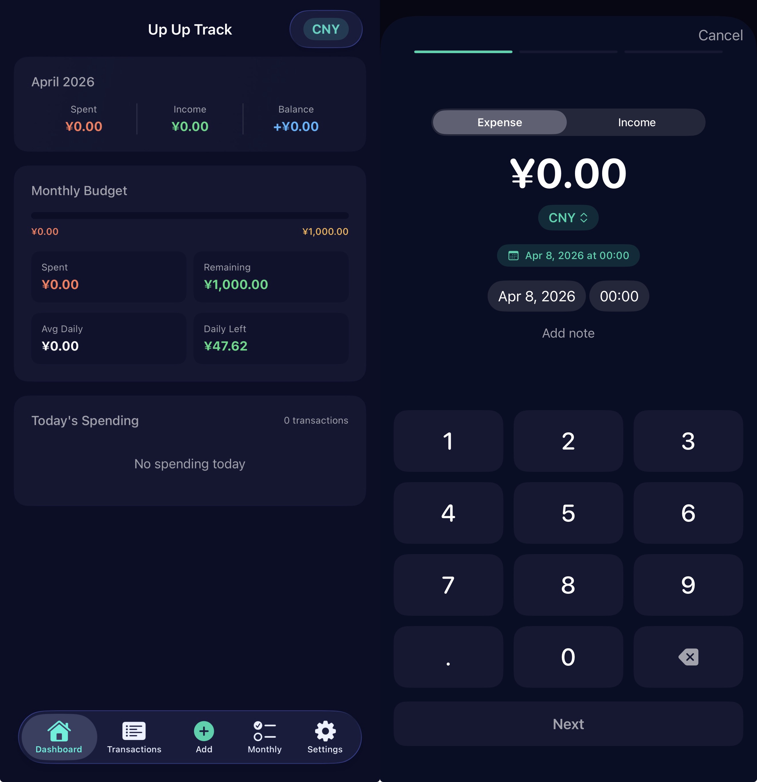 记账类App领域,雷科技也看到不少个人开发者上架的氛围编程作品。Up Up Track,是一款「标准」风格的记账App,主攻海外市场,目前只支持英文显示。对个人开发者来说,面向全球市场分发,不失为一种差异化竞争策略。