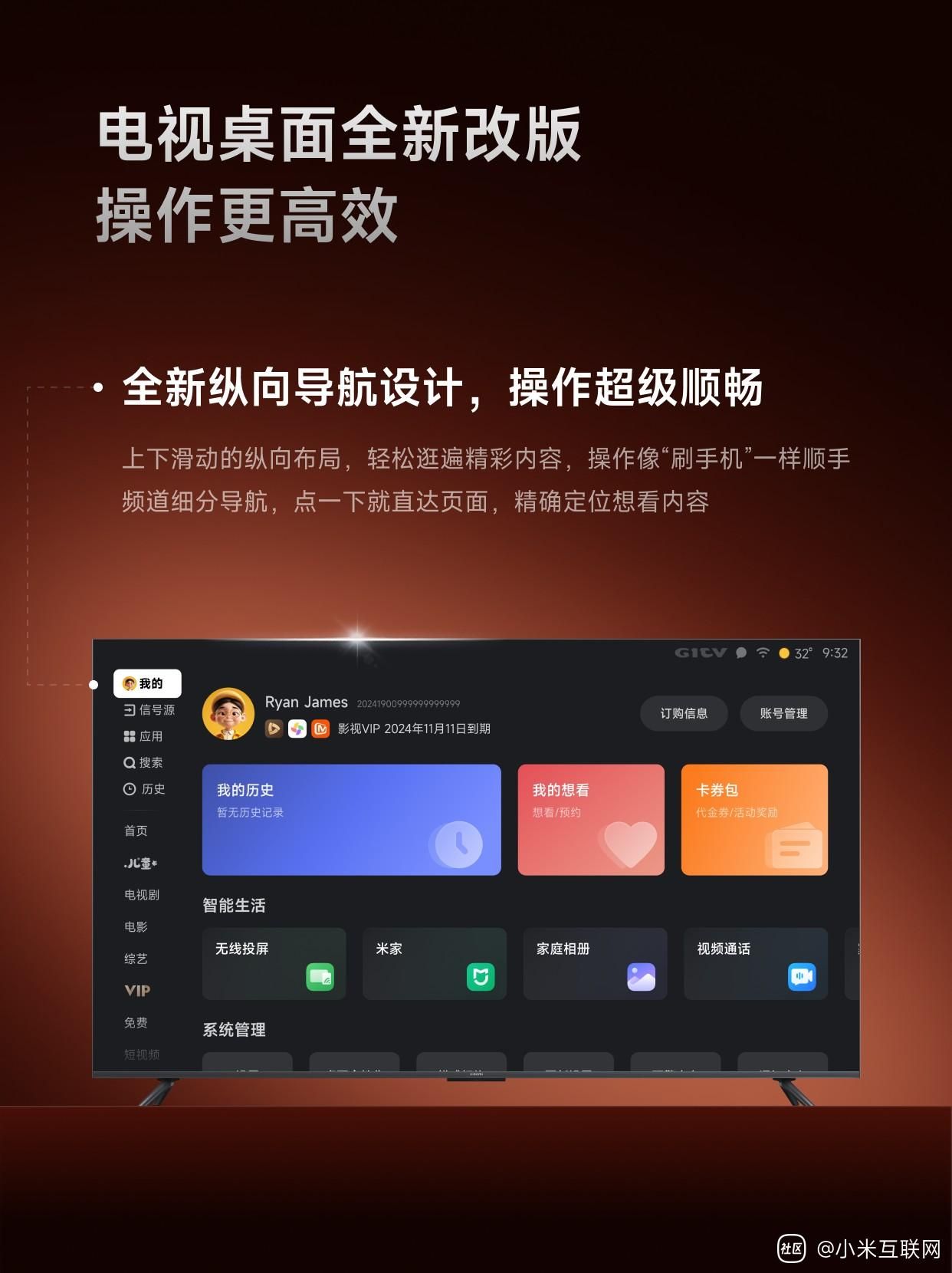 IT之家 4 月 12 日消息,为了给用户带来更流畅、更丰富的电视使用体验,小米电视桌面即将迎来重磅版本升级,正式迈入 4.0 时代。本次升级将于 4 月 13 日起陆续推送,覆盖多款热门机型。