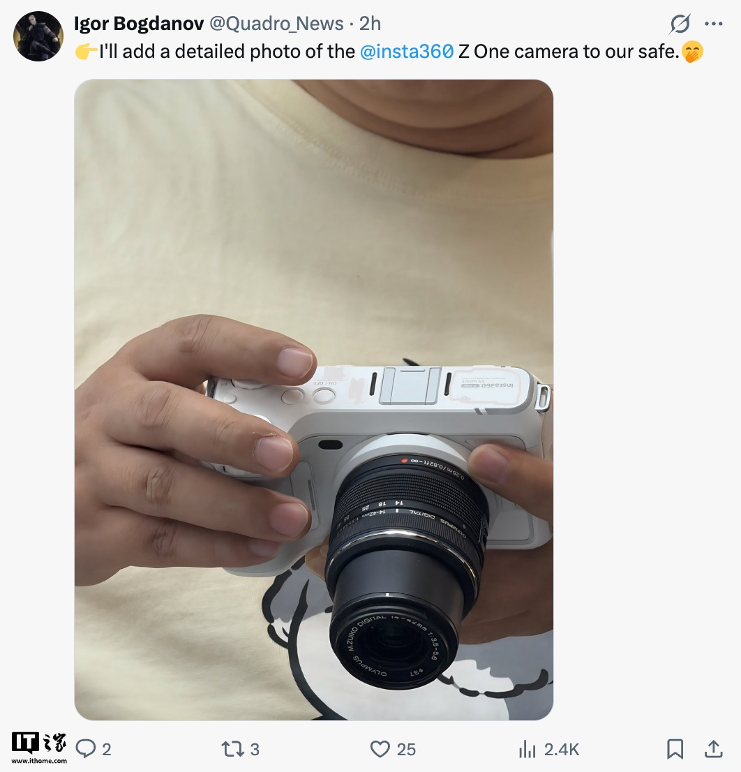 IT之家 4 月 17 日消息,博主 @Igor Bogdanov 现已曝光了影石 Insta360 首款可换镜头数码相机 Z-ONE 的谍照,该机将使用 M43 卡口。