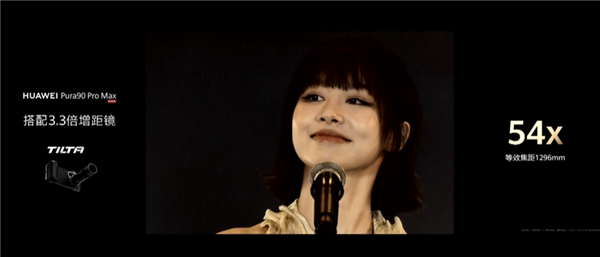 此外,Pura 90 Pro Max还支持外接3.3倍增距镜,在54倍长焦、等效焦距1296mm的状态下依然高度可用,可以在演唱会山顶座位清晰拍摄舞台。
