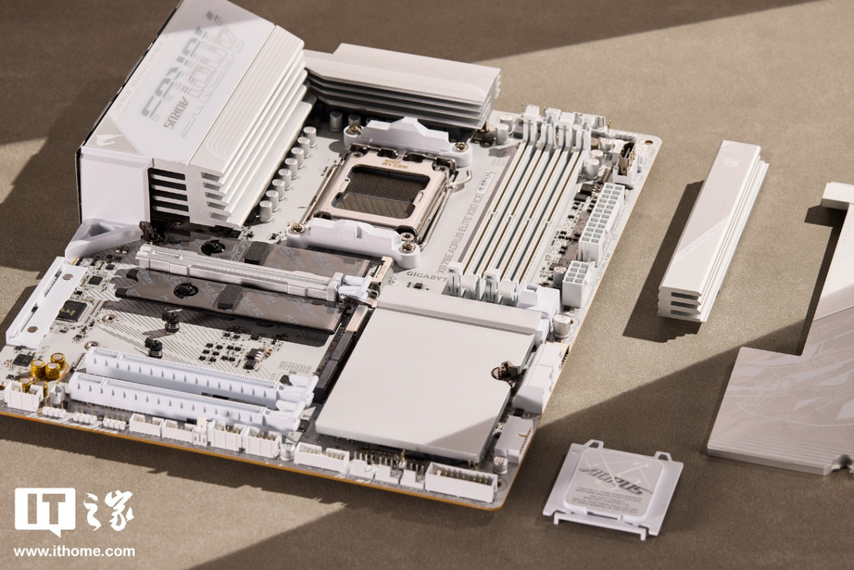 技嘉冰雕系列主板一直采用银白主色调,元器件的白色涂装很彻底,从 PCB 板到散热装甲、PCIe 和内存插槽,甚至是供电接口都做成了白色,颜值和辨识度非常高。这次加入了 X3D 新型号,更适合主流游戏玩家选择。