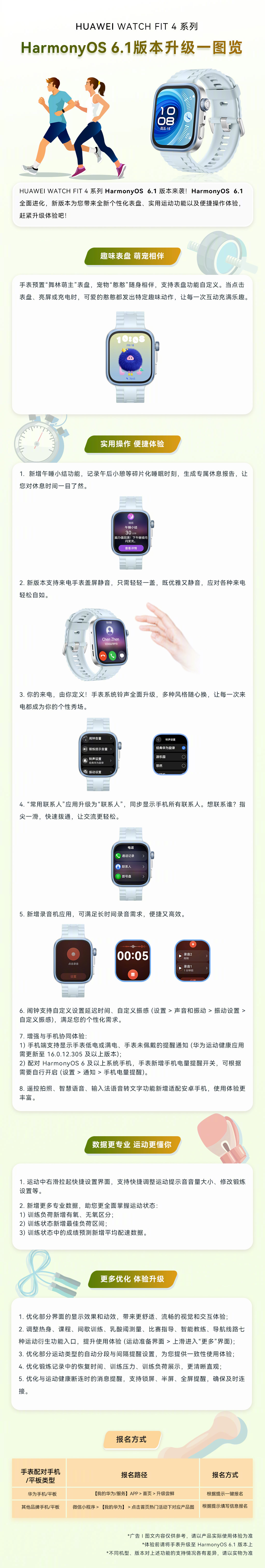 4 月 28 日消息,华为官方今日宣布,华为 WATCH FIT 4 系列 HarmonyOS 6.1 版本来袭,新版本带来全新个性化表盘、实用运动功能以及便捷操作体验。