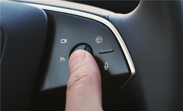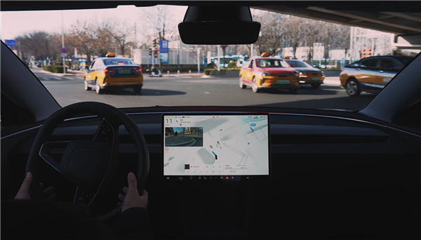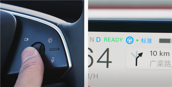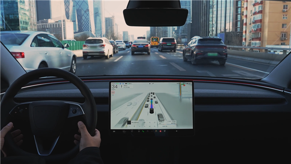 车辆设置导航并开始行驶后,单击方向盘右侧滚轮按钮,即可开启特斯拉 FSD 智能辅助驾驶,车辆会根据导航目的地执行自主地跟车、变道、超车、转弯,并根据交通信号灯启停。
