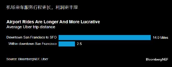 Waymo正在旧金山市中心地区广泛开展运营,平均行程约为2.5英里。相比之下,前往机场的行程为14英里。