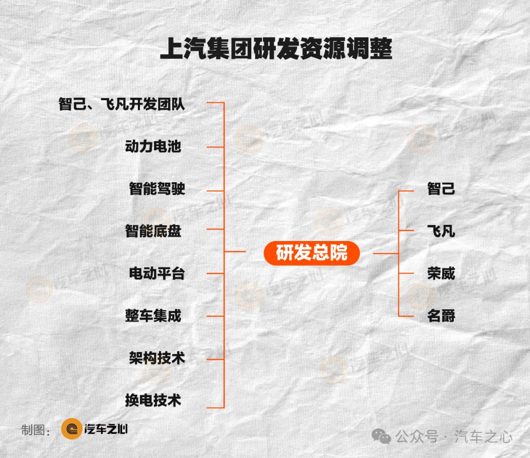 除此之外,上汽还针对组织架构和团队进行大规模调整。