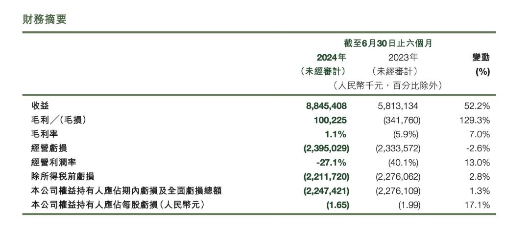 财报显示,2024年前两季度,零跑汽车公司应占净利润分别亏损10.13亿元和11.99亿元。