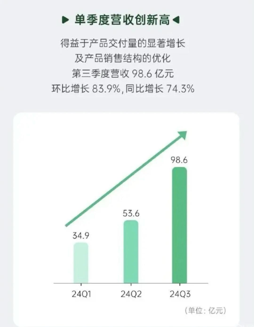 而2024年第三季度,公司实现营收为98.6亿元,同比增长74.3%;公司股东应占净亏损为6.9亿元。
