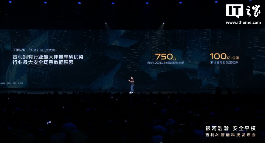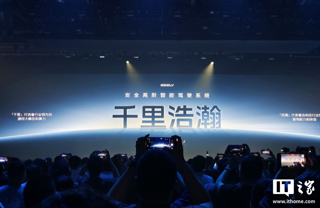 IT之家 3 月 3 日消息,今晚,吉利汽车举办“吉利 AI 智能科技发布会”,并公布了“千里浩瀚”安全高阶智能驾驶系统。“千里”代表着行业领先的通用大模型和算力,“浩瀚”代表着吉利在行业领先的智驾能力和体验。