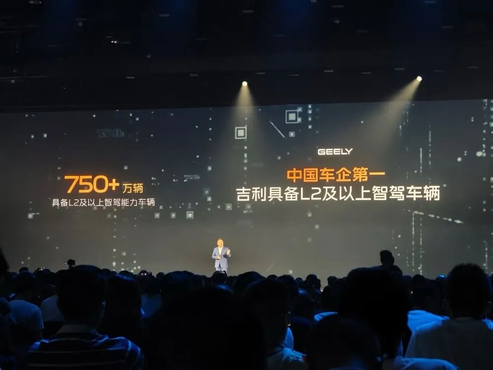 当前,已经有750万辆车辆搭载吉利L2级以上智能驾驶能力,吉利也位居中国车企的第一位。