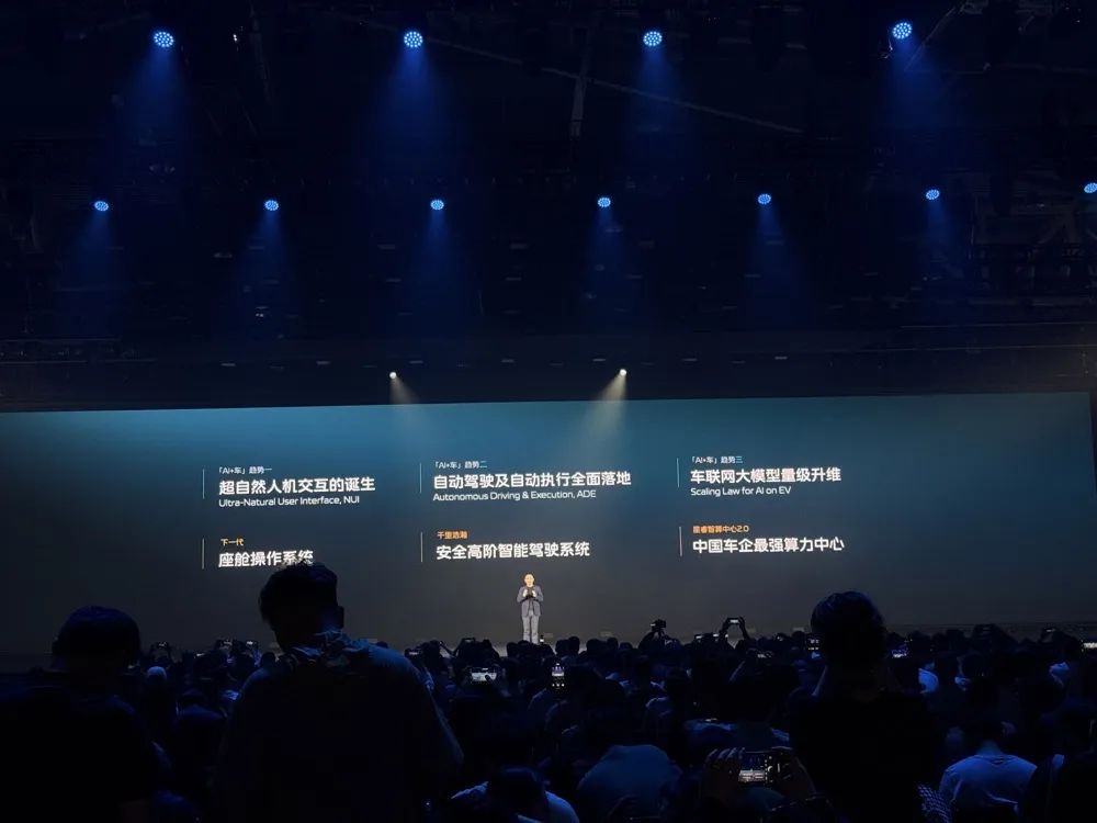 千里浩瀚智驾系统的合作开发方——千里科技董事长印奇也上台分享了自己的看法,吉利从车+AI到AI+车呈现三个技术趋势,分别是超自然人机交互,自动驾驶及自动执行全面落地,以及车联网大模型的量级升维。
