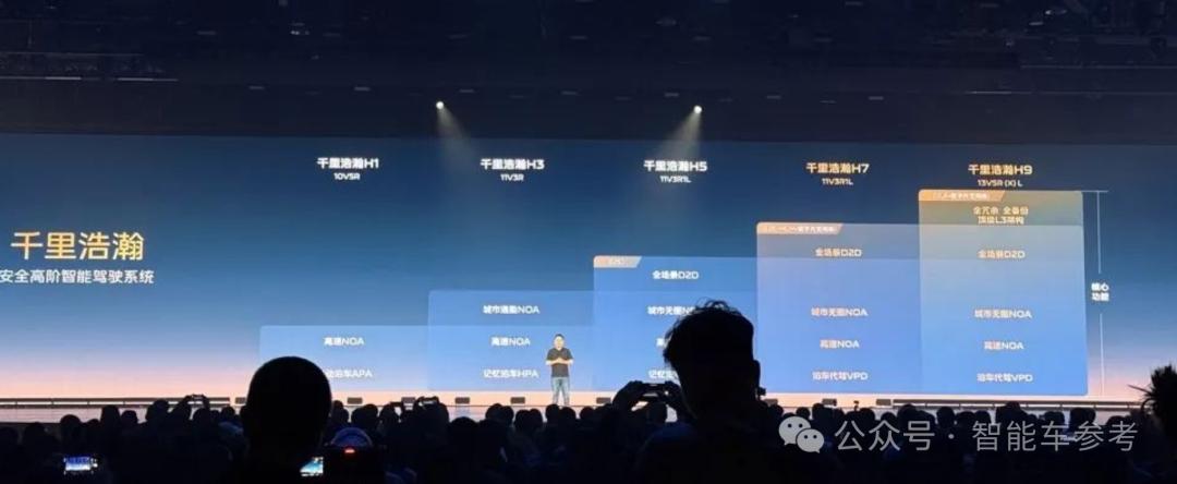 智驾层面同样,吉利CEO淦家阅告诉我们现在吉利集团智驾实现大一统,产品层面一个方案:千里浩瀚,根据车型不同分为5个不同层级,实现标配普及。