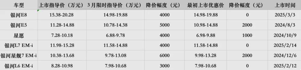 实际“降价”产品基本是在 2024 年上市,2025年上市的最新款车型仅是延续了上市价格的优惠政策