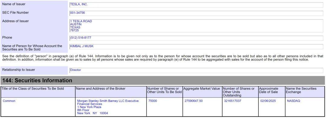 但是在2025年3月3日,通过其提交给美国证券交易委员会(SEC)的文件中披露,罗宾·丹霍姆(Robyn Denholm)再次抛售了价值约3300万至3370万美元的特斯拉股票,减持了112,390股特斯拉普通股。