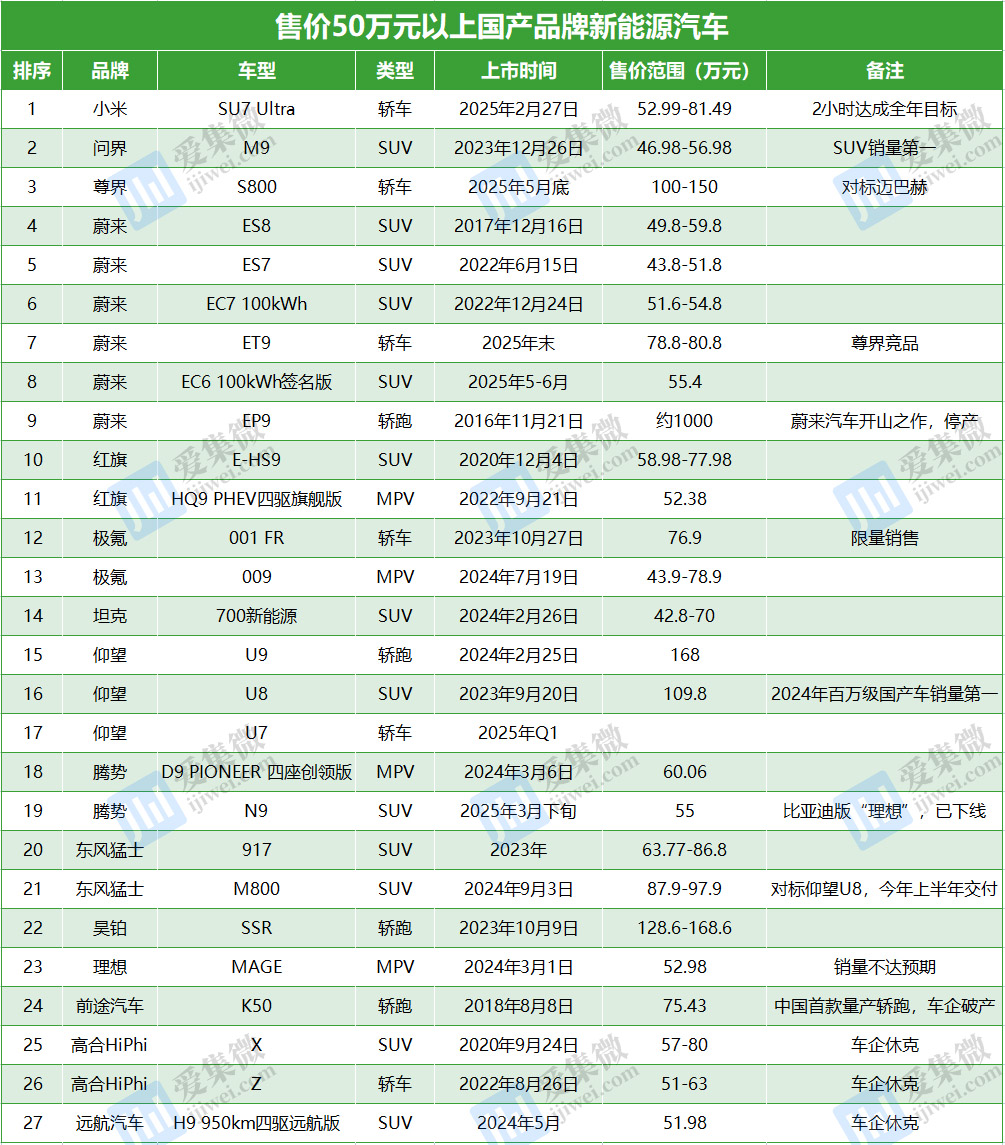 销量最好的是问界M9,2024年销量为15.8万辆,极氪009、蔚来ES8、蔚来ES7也是热门车型。即将上市的尊界S800、蔚来ET9更有望成为新的销量支撑点。