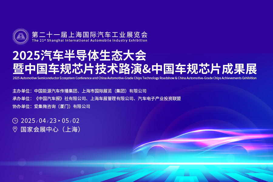 2025年4月25日至5月2日,备受瞩目的第21届上海国际汽车工业展览会将在国家会展中心(上海)盛大开幕。作为全球汽车行业的风向标,上海车展不仅汇聚了众多国际知名汽车品牌,更吸引了全球汽车产业链上下游企业的广泛关注。在今年上海车展期间,由中国能源汽车传播集团、上海市国际展览(集团)有限公司共同主办,《中国汽车报》社有限公司、上海车展管理有限公司、汽车电子产业投资联盟联合承办,爱集微咨询(厦门)有限公司协办打造“2025汽车半导体生态大会暨中国车规芯片技术路演&中国车规芯片成果展”,为汽车产业的智能化发展注入强大动力。