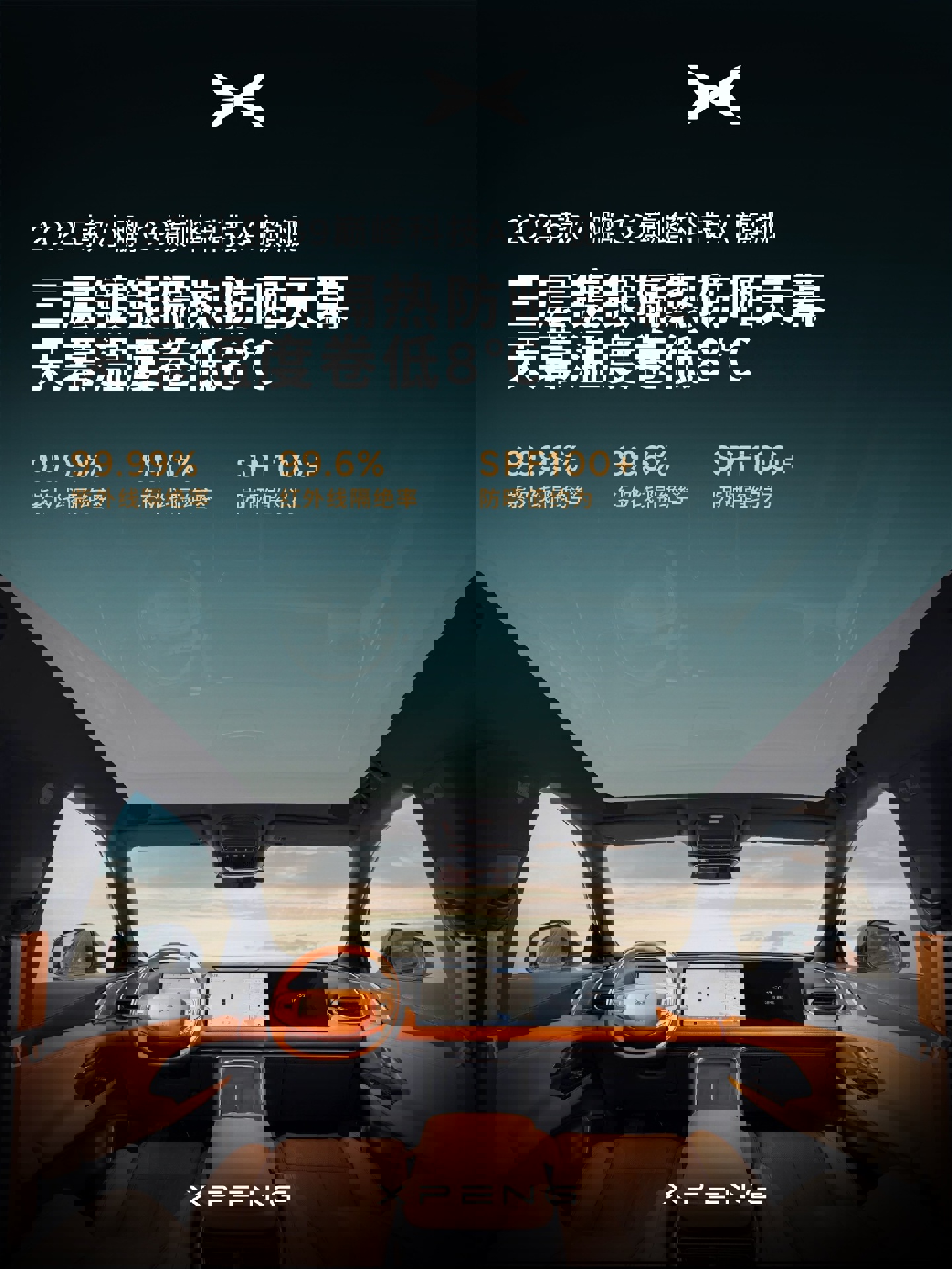 三层镀银隔热防晒天幕,天幕温度卷低 8°C,紫外线隔绝率 99.99%,红外线隔绝率 99.6%,防晒值约为 SPF100+;