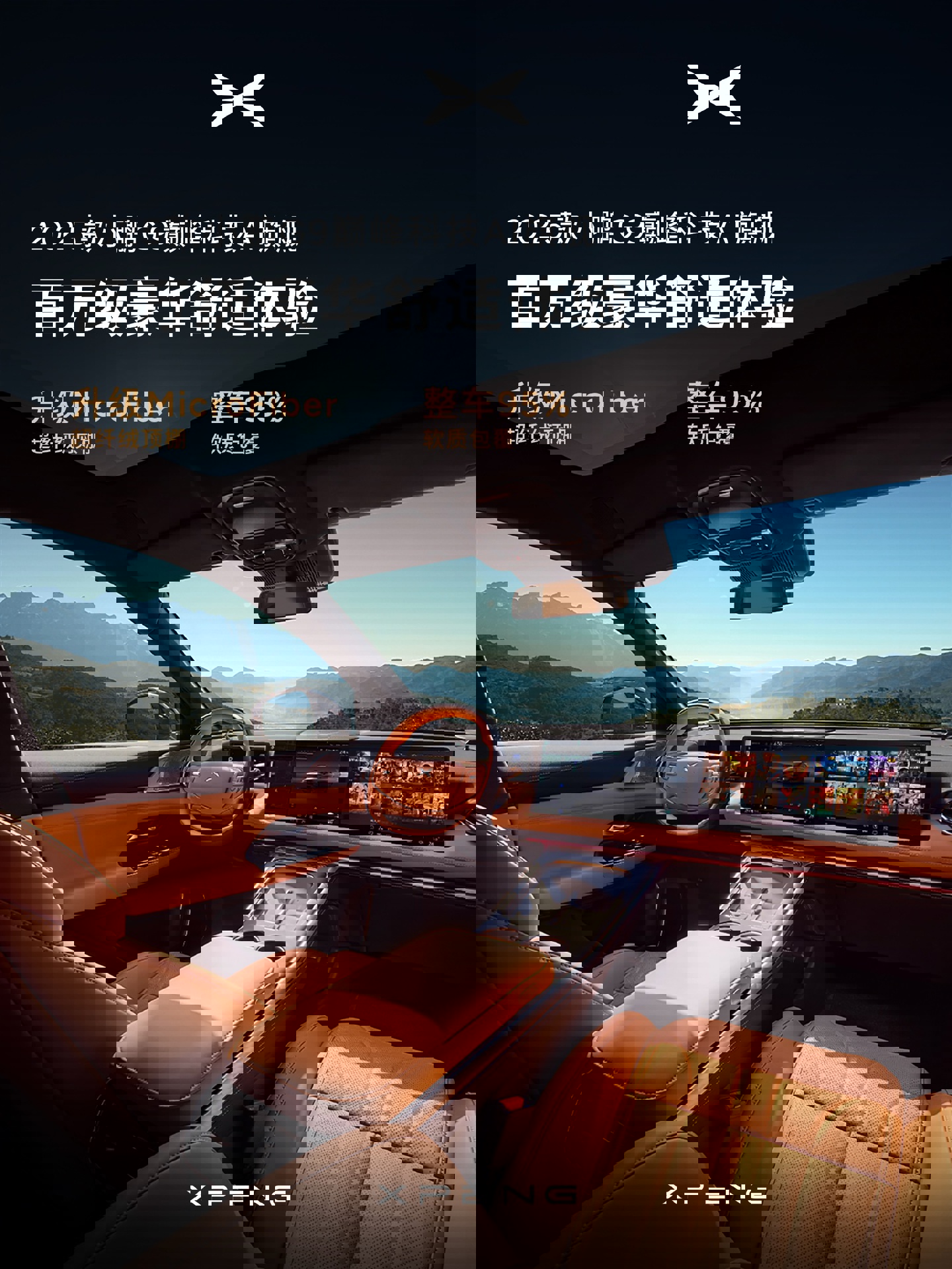 升级 MicroFiber 超纤绒顶棚、整车 95% 软质包覆;